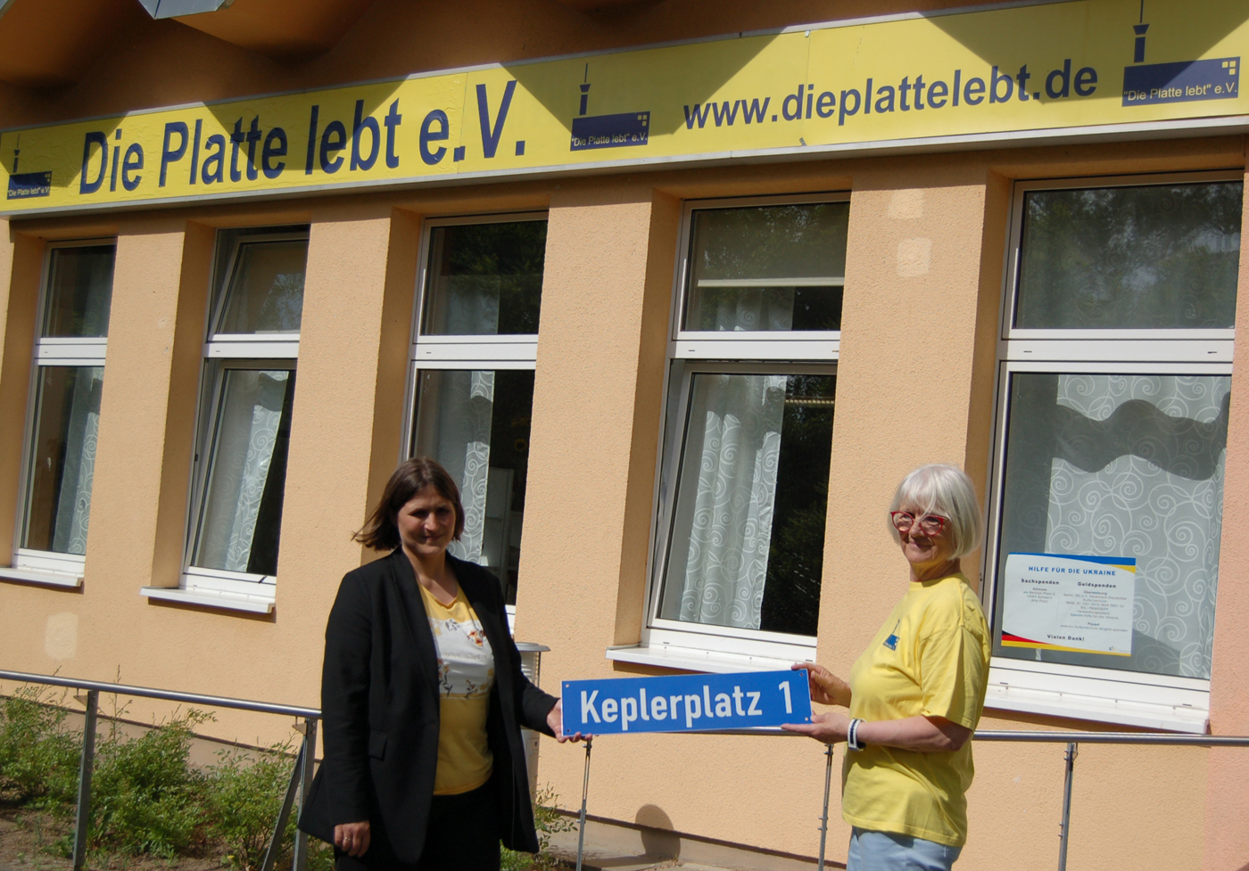 So, nun kann man von vorne und hinten sehen, dass die neue Adresse vom Bertha-Klingberg-Haus, in dem der Verein "Die Platte lebt" und das Ukrainisch-Deutsche Kulturzentrum SIC ihren Sitz haben, Keplerplatz 1 lautet!