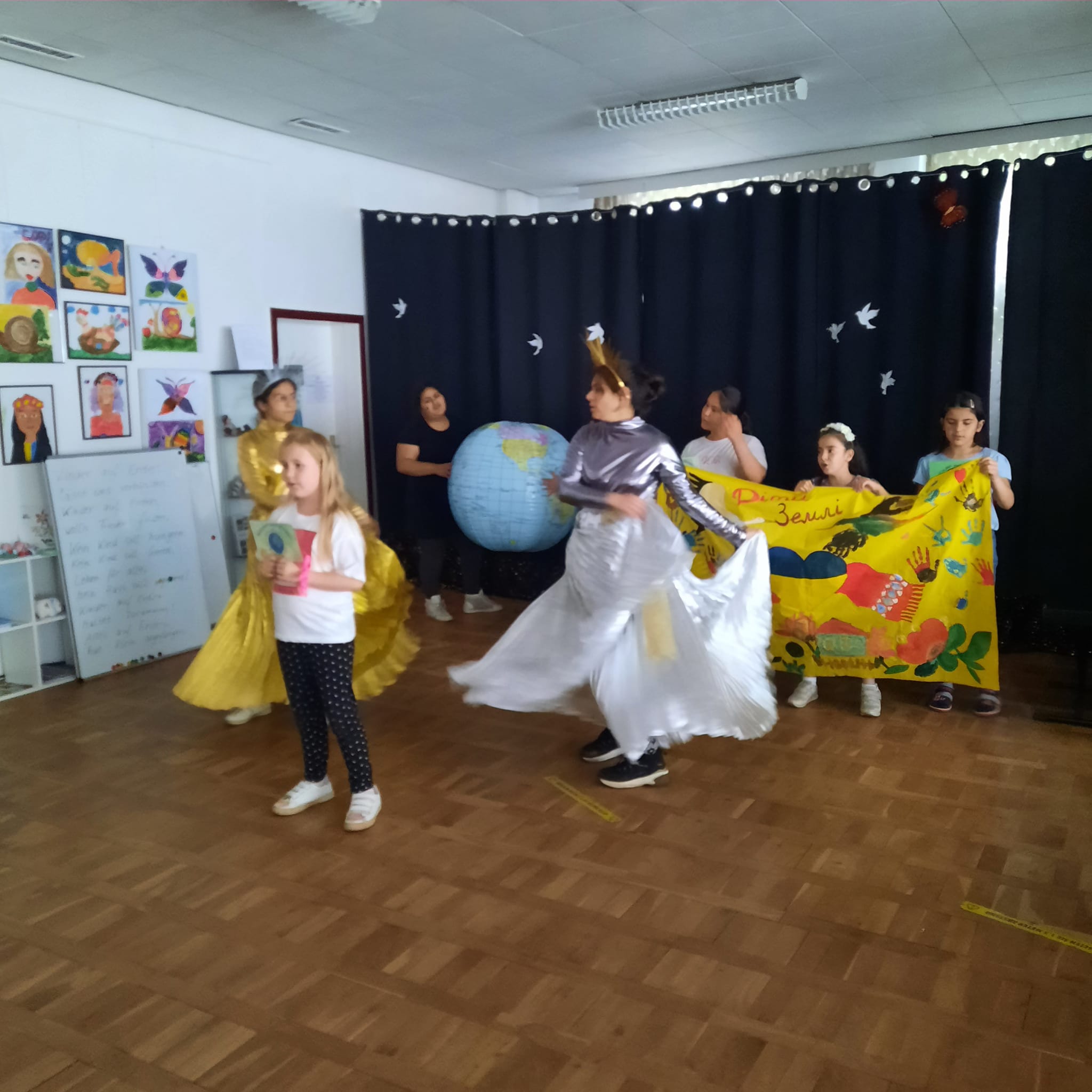 Die Vorbereitungen für das Dreescher Stadtteilfest am 18. Juni laufen auf Hochtouren. Heute wurde im Bertha-Klingberg-Haus gesungen und gemalt. Olga Mikheeva hat mit ukrainischen Kindern geprobt, die auch am Kreativkurs von SIC teilnehmen. Einige Plattelinos waren auch dabei und haben hinterher etwas für das Playback aufgenommen.