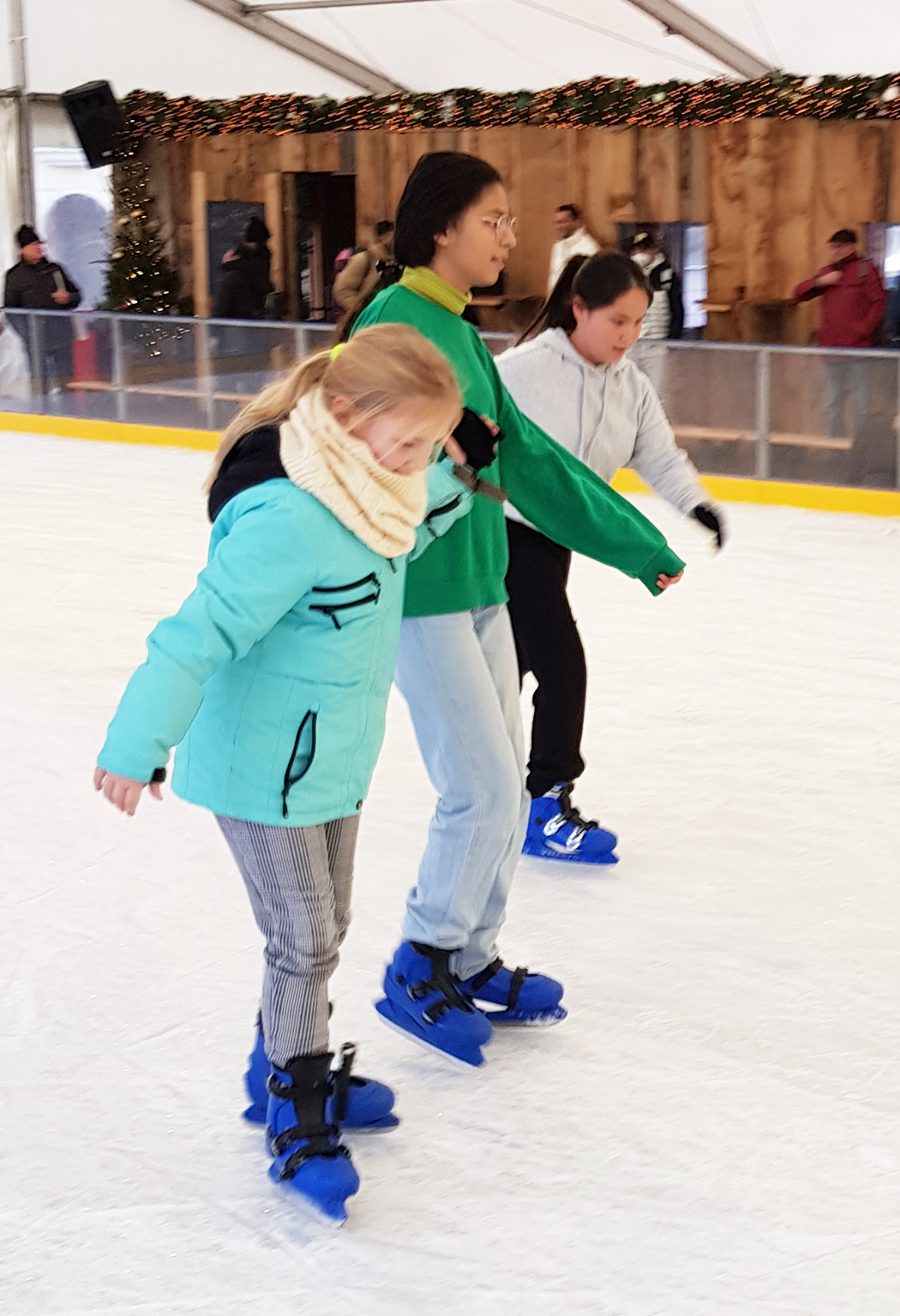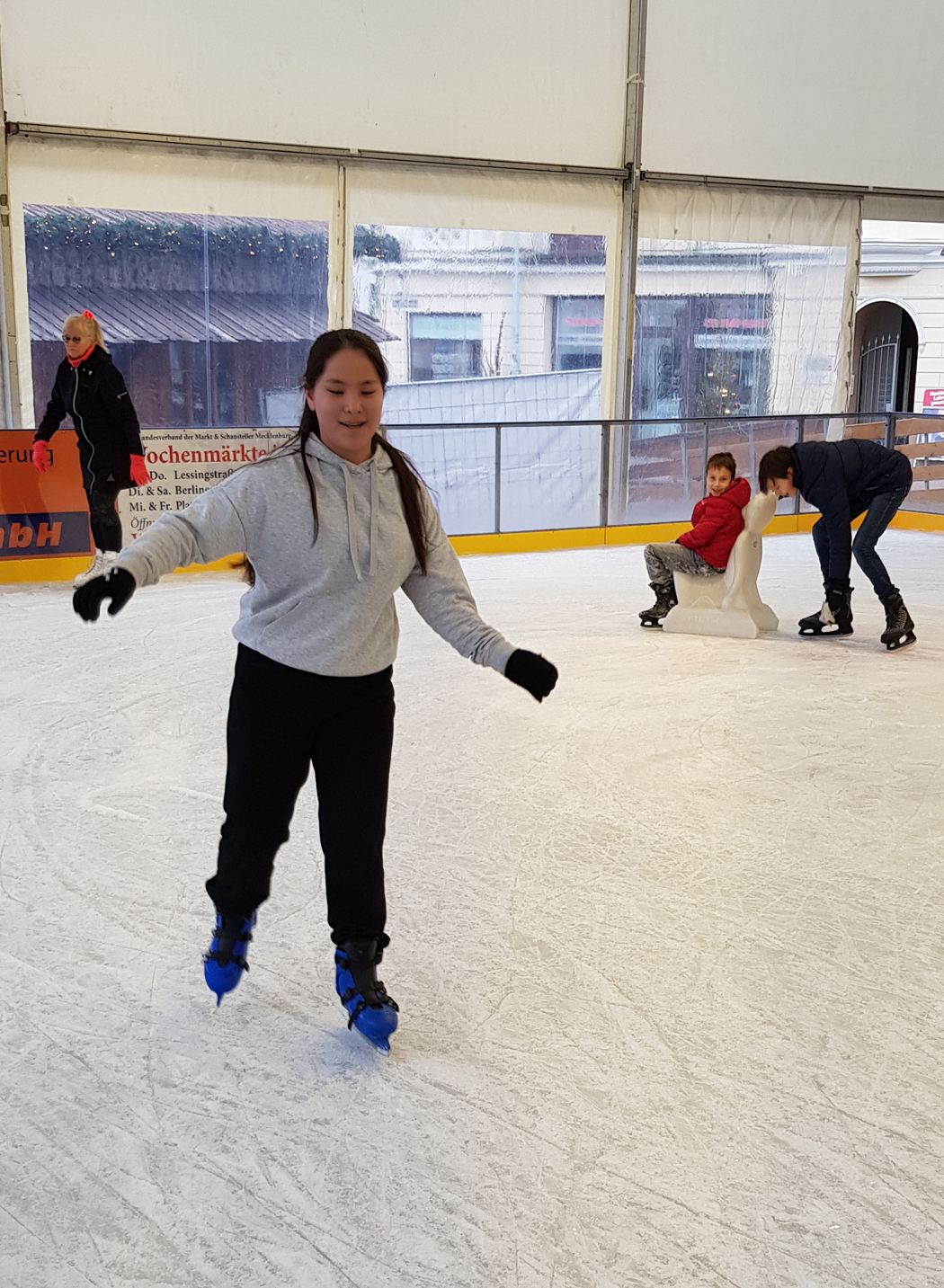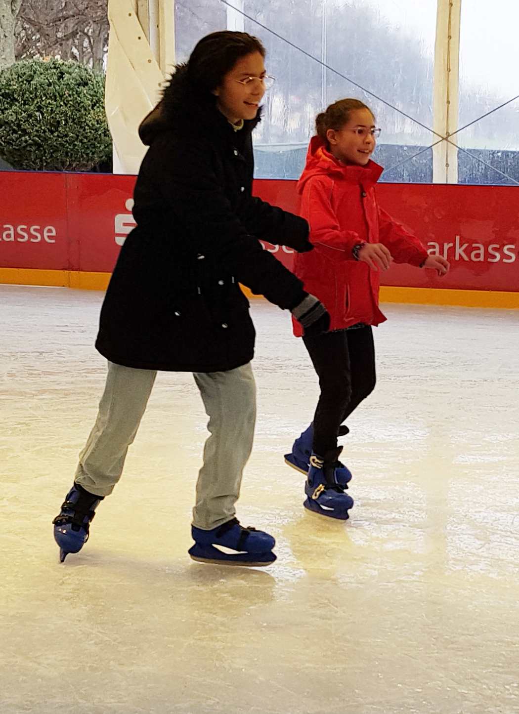 Mit den "Plattelinos" auf dem Weihnachtsmarkt. Während ich beim Schlittschuhlaufen große Anlaufschwierigkeiten hatte und mich natürlich einmal schmerzlich auf den Hintern gesetzt habe, haben die Mädels ohne Probleme ihre Runden gedreht und waren bei ihren Stürzen sofort wieder auf den Beinen. Gut gemacht! Manchmal sind die "Lütten" eben besser als die Großen...