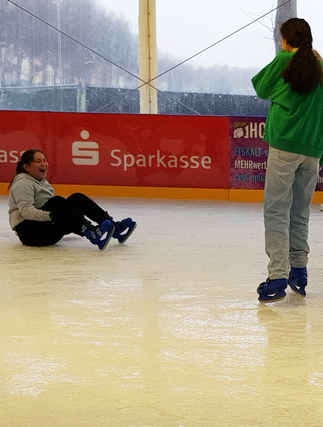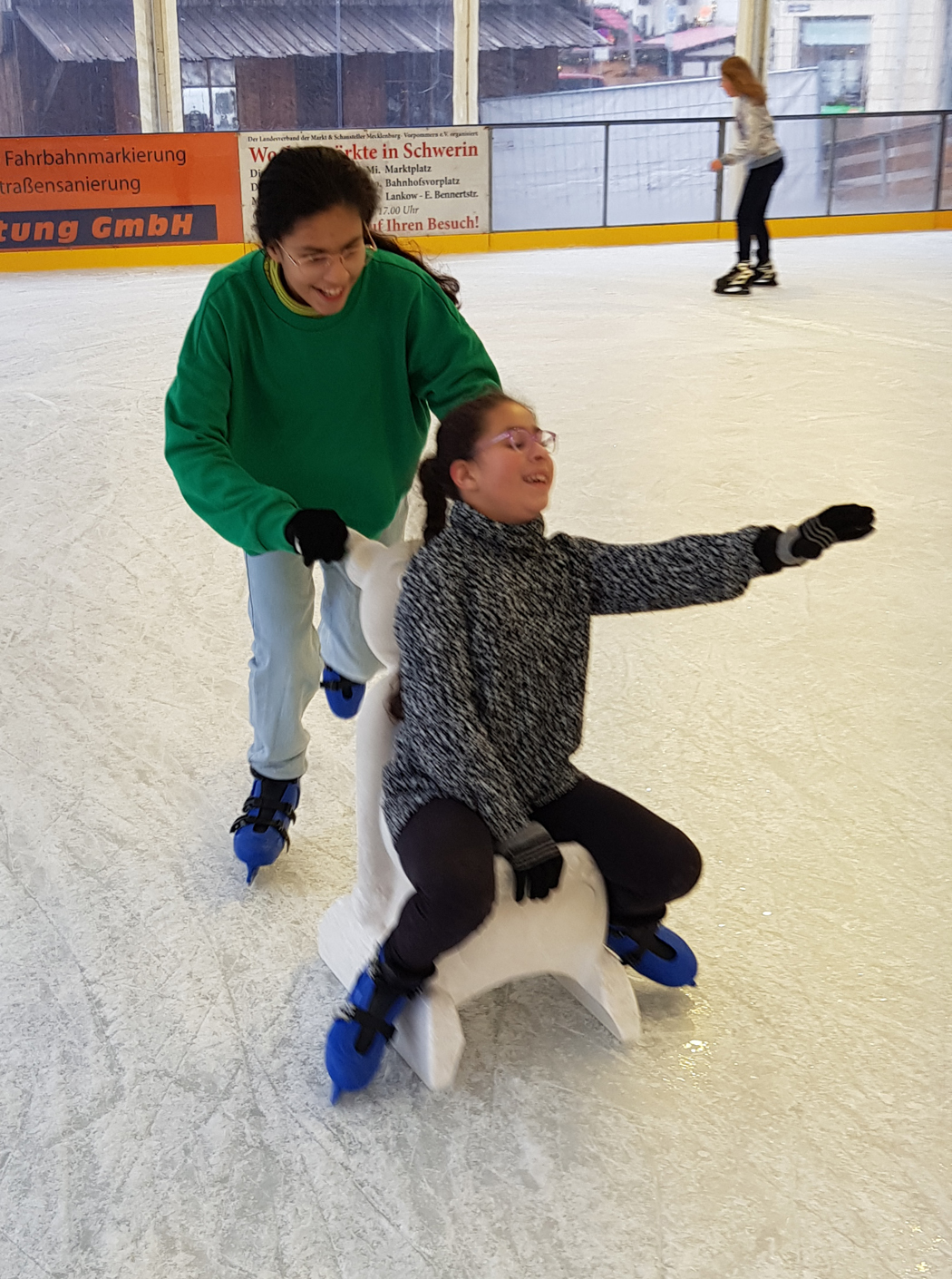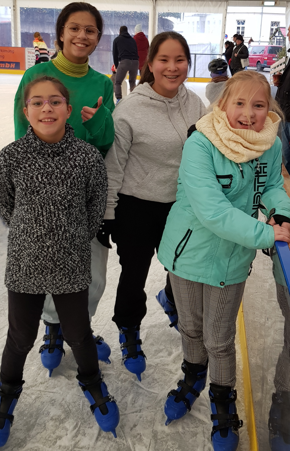 Mit den "Plattelinos" auf dem Weihnachtsmarkt. Während ich beim Schlittschuhlaufen große Anlaufschwierigkeiten hatte und mich natürlich einmal schmerzlich auf den Hintern gesetzt habe, haben die Mädels ohne Probleme ihre Runden gedreht und waren bei ihren Stürzen sofort wieder auf den Beinen. Gut gemacht! Manchmal sind die "Lütten" eben besser als die Großen...