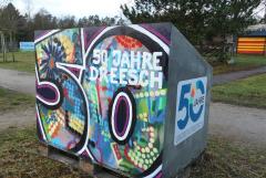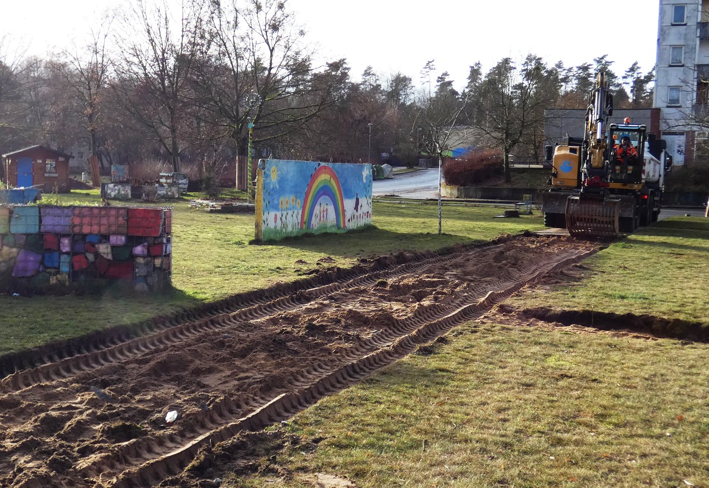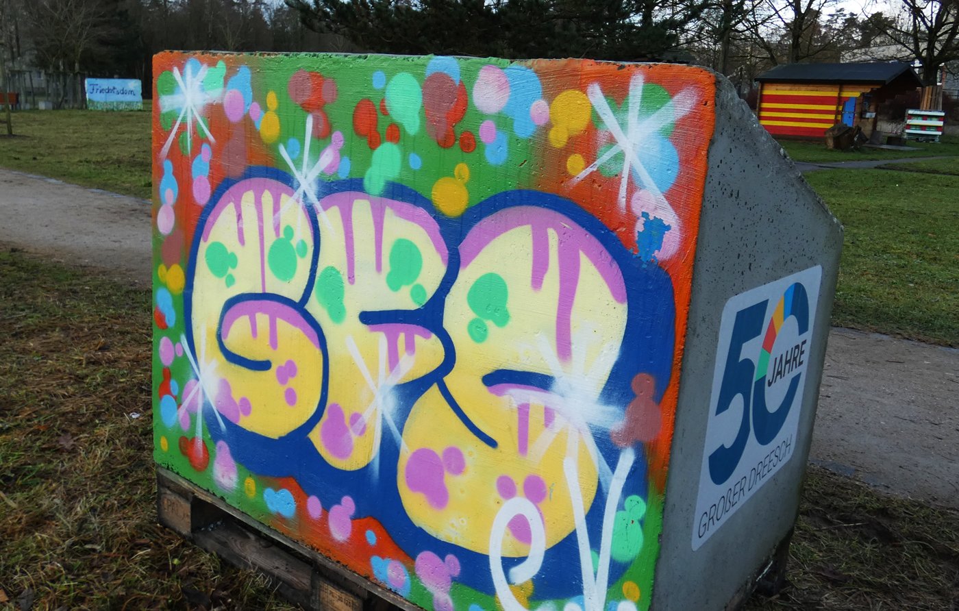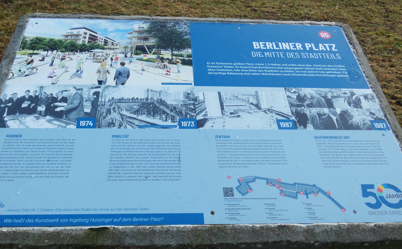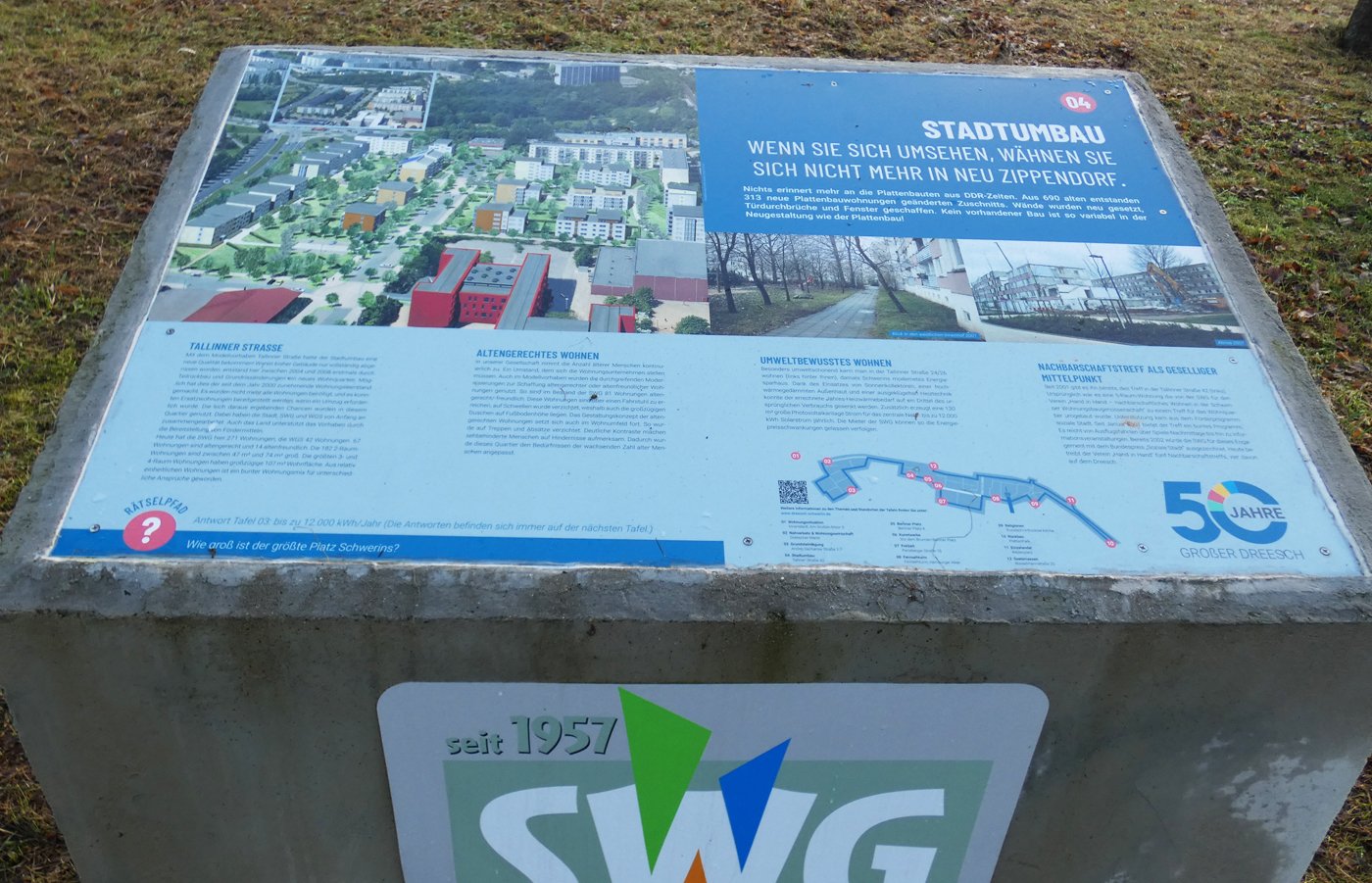 Es wurden Obstbäume gepflanzt. Die Gehwege werden erneuert, und die Betonelemente vom Ausstellungspfad "50 Jahre Großer Dreesch" haben im PlattenPark ihren endgültigen Platz bekommen. Man kann sich also über die Geschichte des Plattenbaugebietes ganz bequem bei einem Spaziergang informieren und sich die schönen Bilder, die von verschiedenen Vereinen gemalt wurden, ansehen