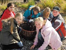 Bild:Die 4 b beim Steinesammeln Fotos: hl