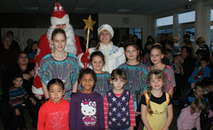 Bild: Die Tänzerinnen von „Makkabi“ mit Väterchen Frost und Schneeflöckchen