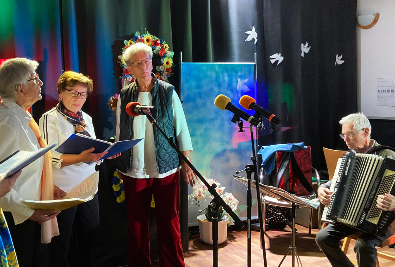 Auch wenn es in diesem Jahr in Schwerin keine offizielle Interkulturelle Woche gibt (wegen des Bürgerfestes), hatten wir heute zu einem interkulturellen Singen eingeladen. Gesungen wurden deutsche. ukrainische und plattdeutsche Volkslieder. Älteste Teilnehmer waren Kurt Junghans (Akkordeon) und Annemarie Kobow (Ingrids Singegruppe und "Platt in die Platt"), die beide im nächsten Jahr 90 werden!