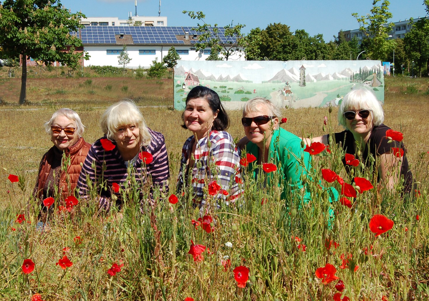 Gestern noch mit Kleid und Hut auf dem „Laufsteg“ im Bertha-Klingberg-Haus, heute mit Pinsel und Farbe im PlattenPark. Am Vormittag habe ich mit Raisa, Valentina und Tetjana am Plattenlabyrinth weitergearbeitet. Wir haben die Steine vom Unkraut befreit und bunt bemalt. Auch der Pfahl vom Windspiel sieht jetzt wieder schön aus. Aber es bleibt noch genug zu tun für die nächsten Dienstage.